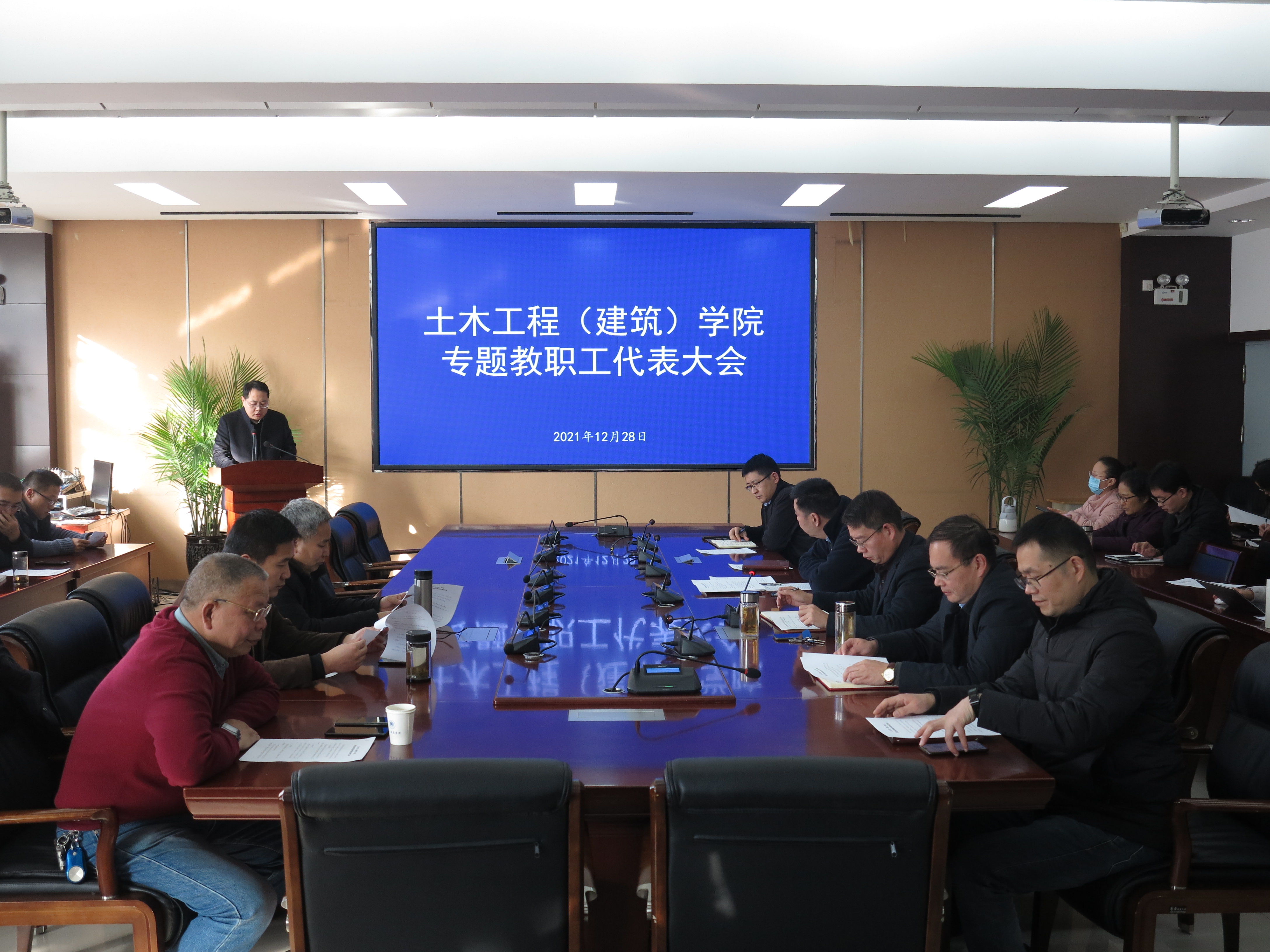 12月28日下午,土木工程(建筑)学院在32208会议室召开2021年度专题教代会,学院领导班子成员和35名教师代表参会。会议由院工会主席王迪主持。