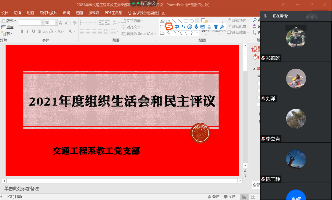 交通工程系教工党支部召开2021年度组织生活会