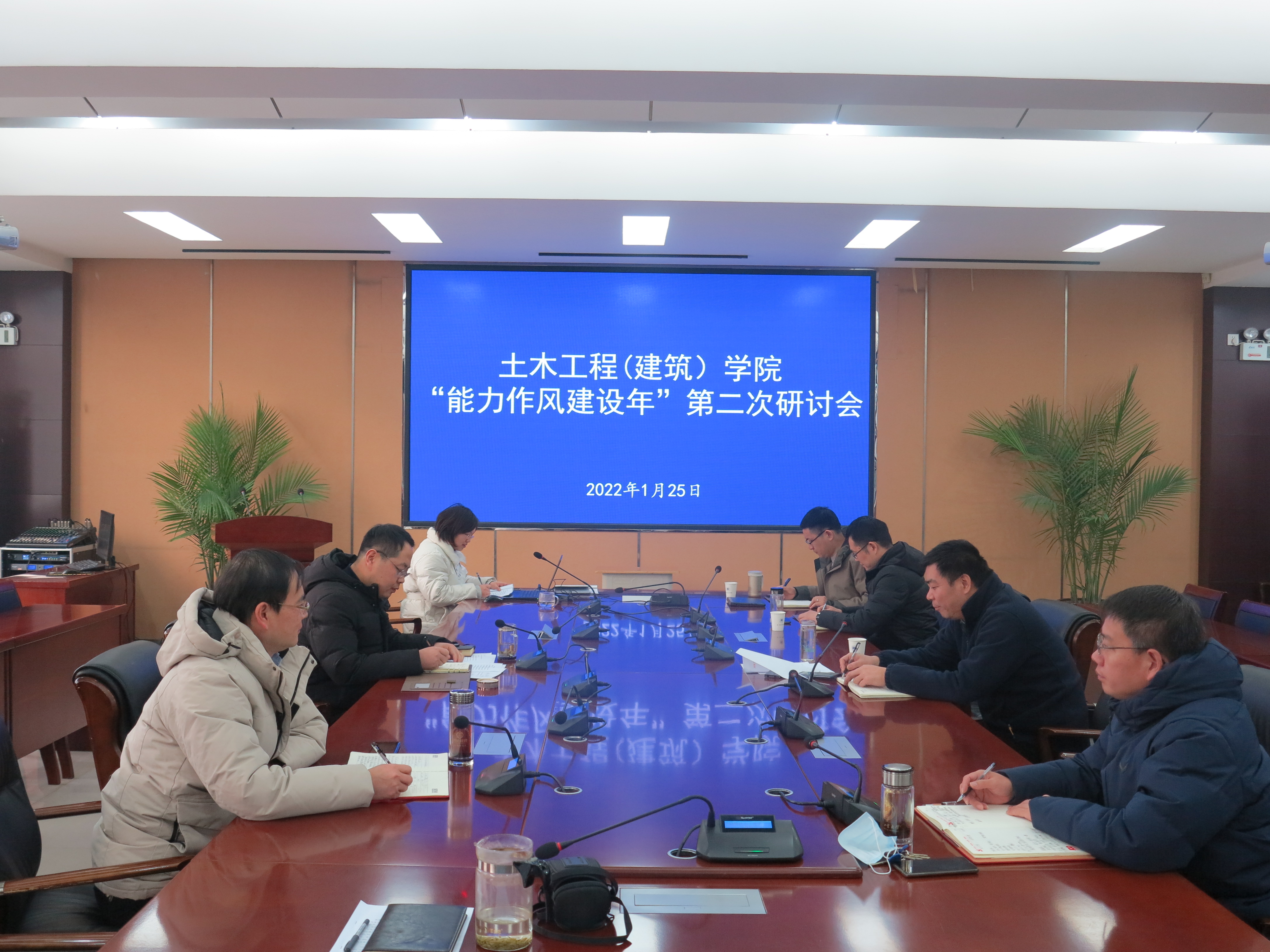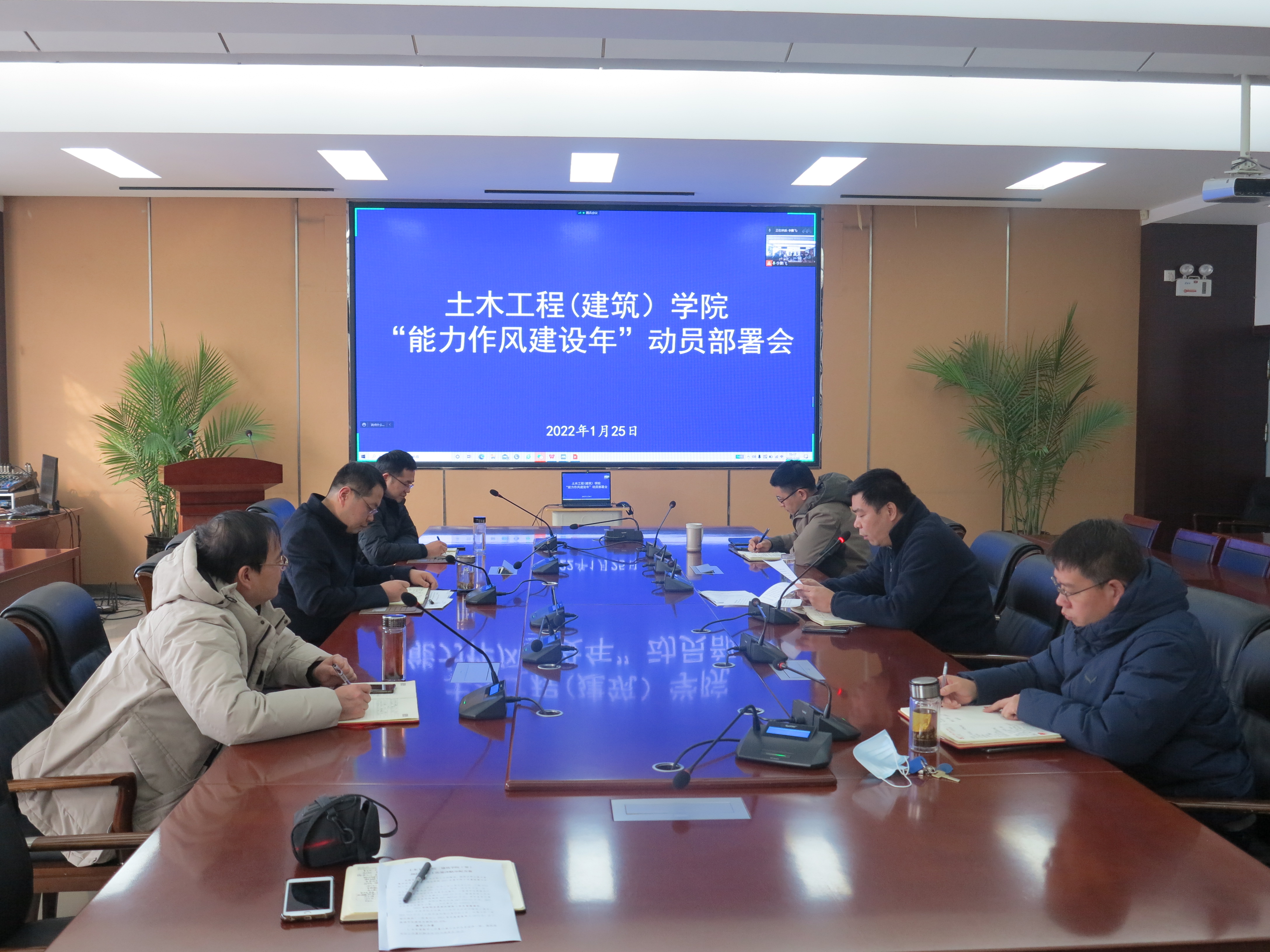 1月25日,土木工程(建筑)学院召开教职工大会,在全院对“能力作风建设年”活动进行动员部署。会议采取线下线上相结合的方式,在32208会议室和腾讯会议同步进行。学院领导班子和全体教职工参加。院党委书记王洪江主持会议。