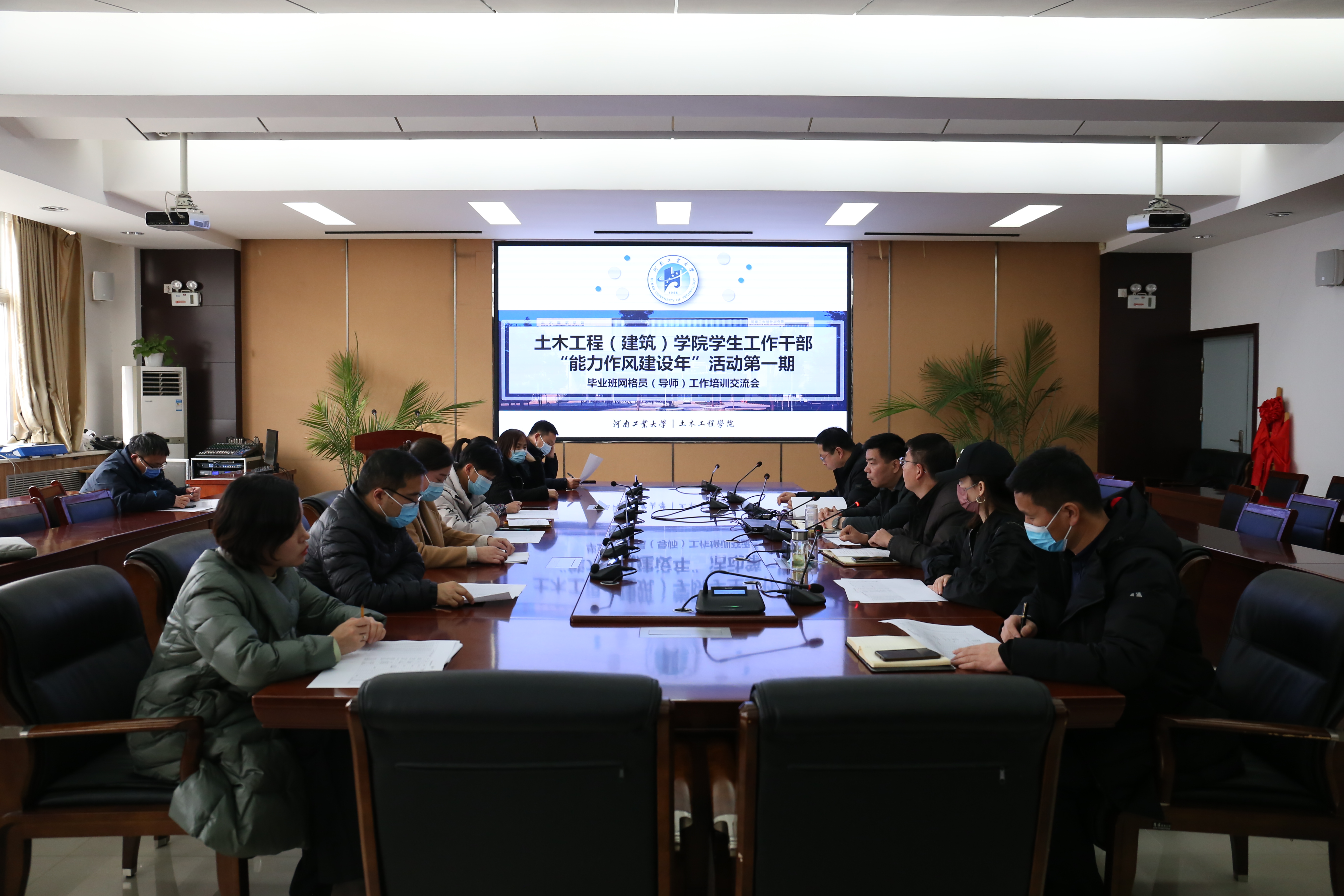 为提升毕业班(网格员)导师做好毕业生的工作的能力,深入推进能力作风建设活动,2月22日下午,土木工程(建筑)学院在32208报告厅召开毕业班网格员(班主任)工作培训交流会,布署本学期疫情防控、考研就业、心理健康等重点工作。学院党委书记王洪江、院长丁永刚、副书记王迪及全体毕业班网格员(班主任)、毕业班辅导员参加了会议,会议由党委副书记王迪主持。