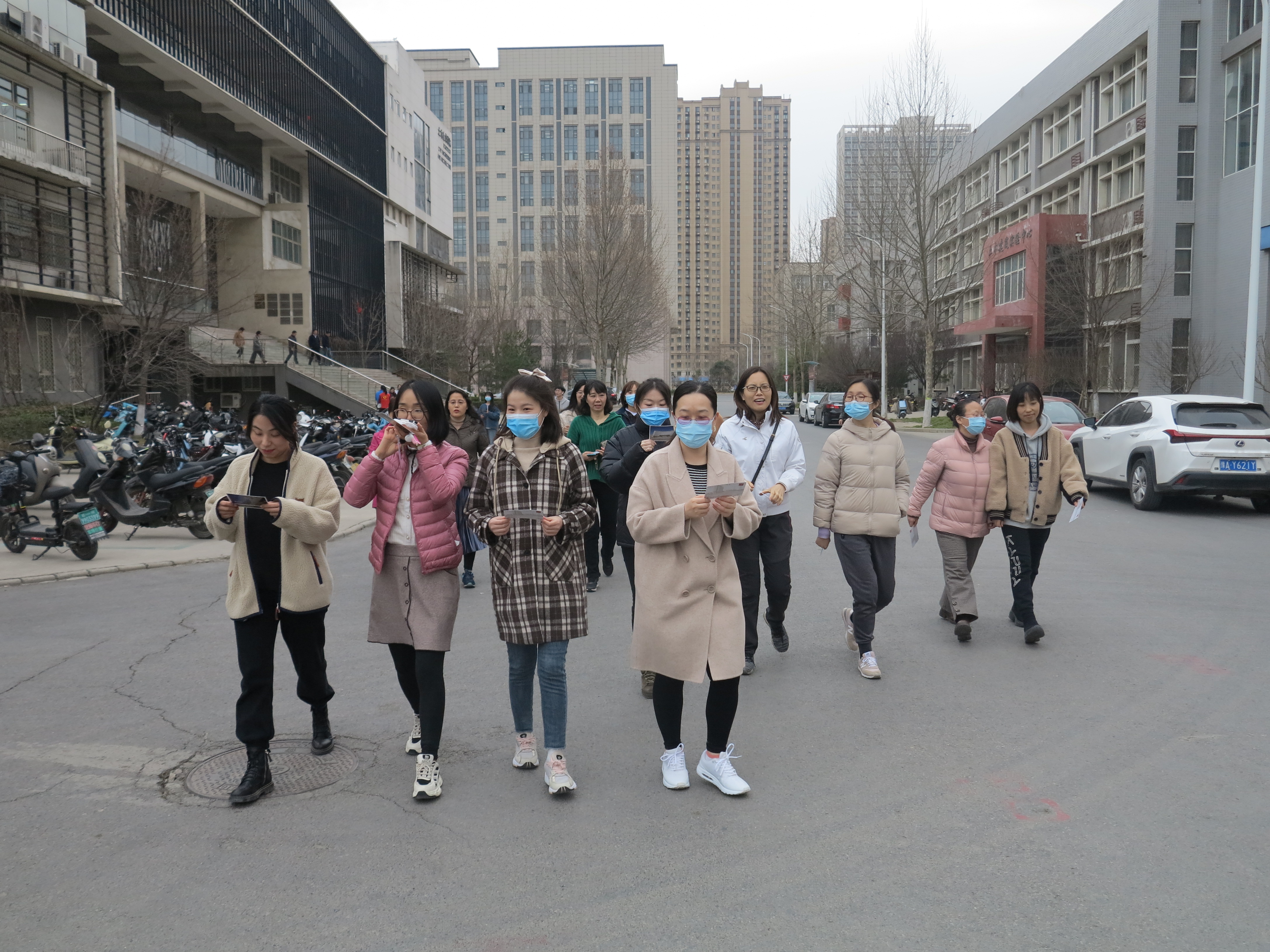 下午四时,随着发令哨响,女教职工们准时在学院西大门广场出发,集体沿指定路线健步走6圈,全程约5公里。大家精神抖擞,健步如飞,迎着和煦的春风,边走边聊,用心感受春天的到来,感受运动带来的舒畅,用绿色健康的方式欢度自己的节日,很多男职工也自发加入到活动中。