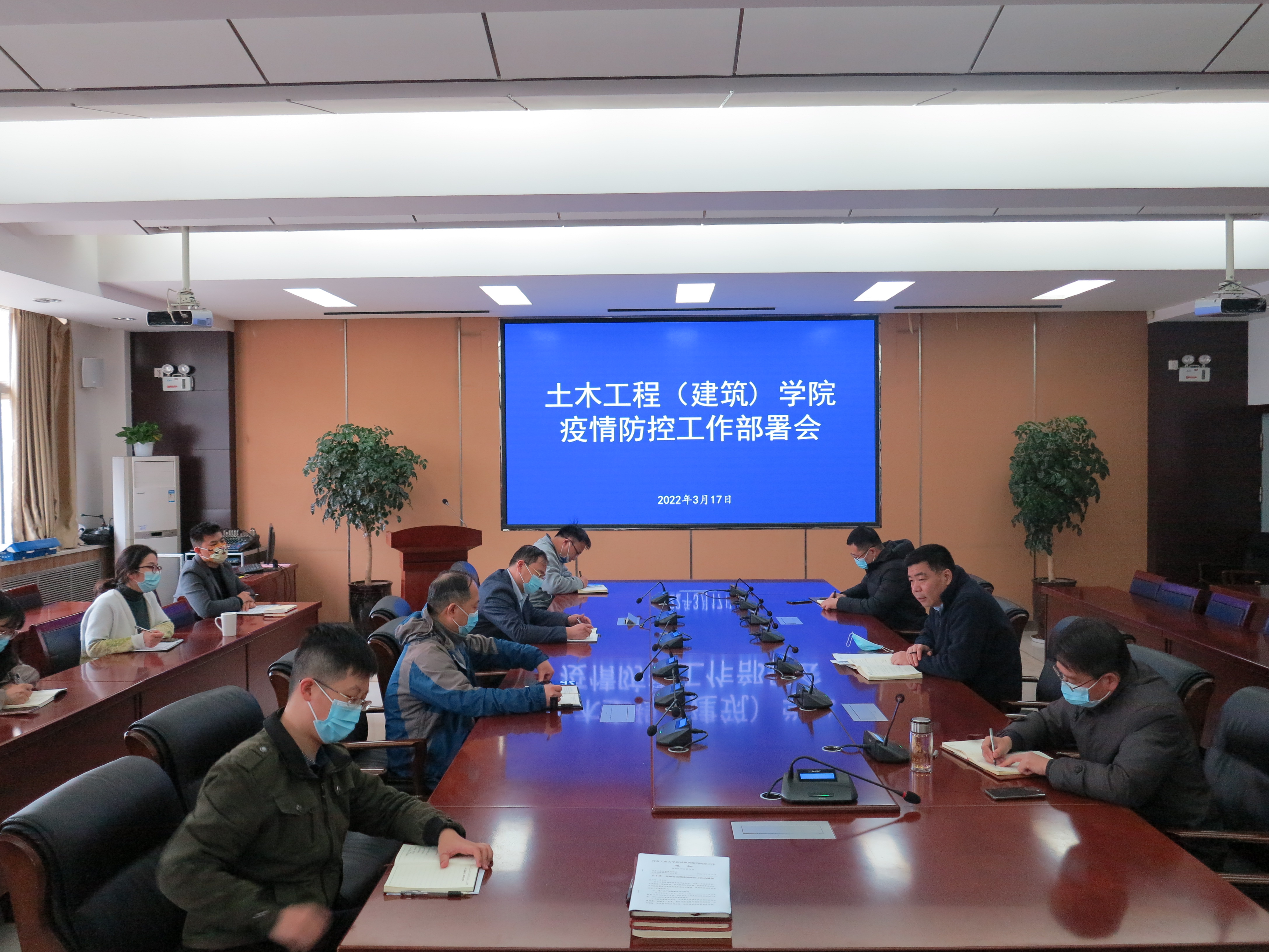 3月17日下午,土木工程(建筑)学院在32208召开疫情防控工作专题会议。学院领导班子成员、全体辅导员、各科室负责人和设计院负责人参加。会议由院党委书记王洪江主持。