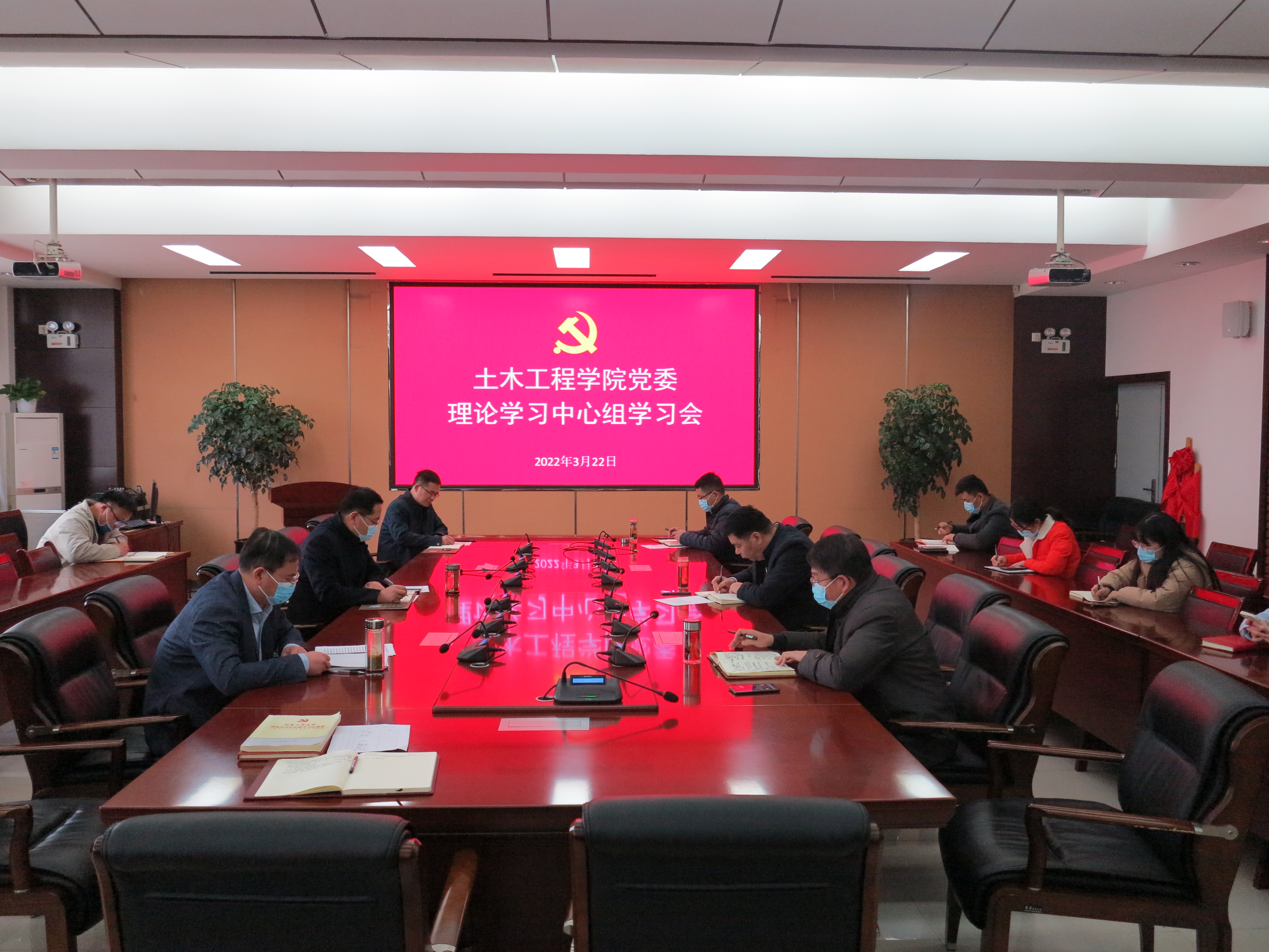 党委在32208召开理论学习中心组(扩大)学习会,学院领导班子全体成员、各科室负责人、全体辅导员和设计院负责人参加会议。院党委书记王洪江主持会议。